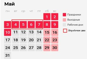 1. В соответствии с Указом Президента Российской Федерации от 23 апреля 2021 г. N 242 "Об установлении на территории Российской Федерации нерабочих дней в мае 2021 г." (далее - Указ) с 4 по 7 мая 2021 г. установлены нерабочие дни с сохранением за работниками заработной платы в целях сокращения распространения новой коронавирусной инфекции (COVID-19).